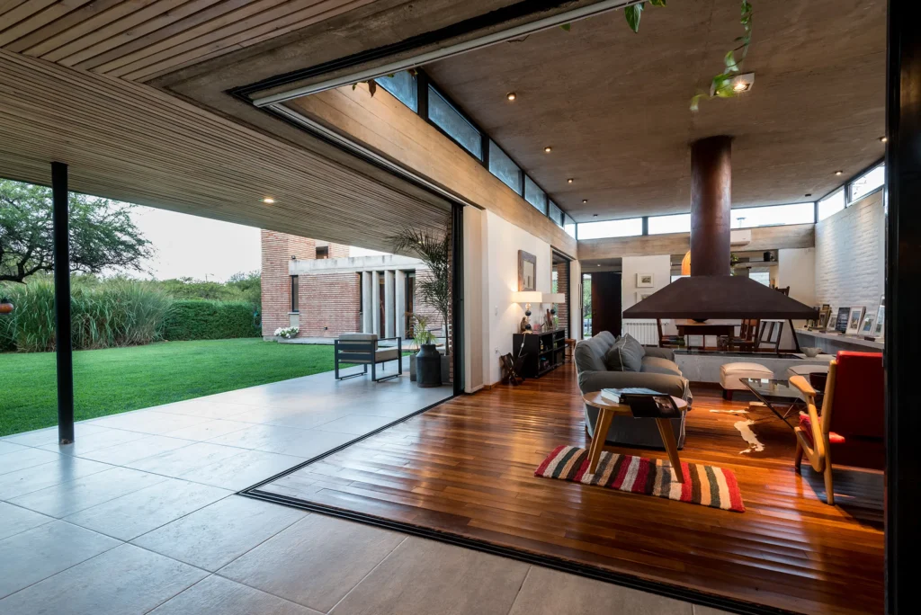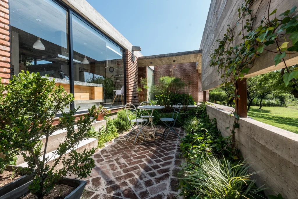 La casa nace y toma su nivel en la parte de atrás del terreno, permitiendo elevarla y convertirse en “balcón” hacia el frente para la contemplación del paisaje; paisaje característico y típico de Córdoba. Su diálogo con la naturaleza es muy fuerte, ya que el espíritu del lugar está ligado a “lo natural”.